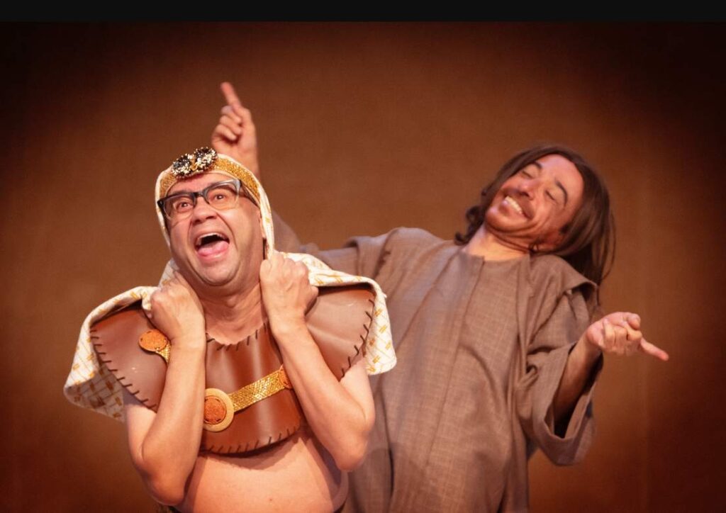 A montagem conta com Adriana Nunes, Adriano Siri, Jovane Nunes, Ricardo Pipo, Victor Leal e Welder Rodrigues. Com humor inteligente, improvisação e sátiras que misturam o universo bíblico com temas contemporâneos, o texto acompanha Hermanoteu — um hebreu obediente do ano zero — em sua missão até a mítica Terra de Godah. A peça tem cerca de 80 minutos de duração e classificação indicativa de 14 anos.